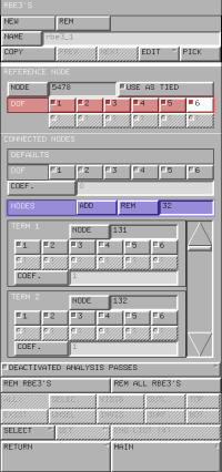 - esplicitato la natura dipendente dei gradi di libertà del REFERENCE NODE attivando i pulsanti evidenziati in rosso in figura